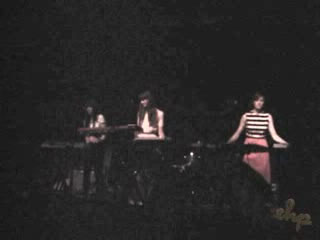 Until I saw the We Are Scientists show appear on a calendar, I'd never heard of the Miramar Theatre. As far as I can tell, they've only just started booking bands in there -- it is, in fact, a little black box theater. We got to the show about 20 minutes late, and when we walked in it was into the darkest concert venue I have ever seen. Onstage, the three-piece keyboard-and-drum-machine Brooklynites of Au Revoir Simone were in the middle of their set. Some of what they did was really good and some was just too thin or underdeveloped, which mirrors the quality of their debut EP. I liked this new song, but it did seem to go on a little too long for what it did. I'd be really interested in seeing them again with a live drummer, since most of what they did with the drum machine could be easily replicated with a simple kit. I've got three clips coming up from the We Are Scientists set, but none from the Double, who played second. I thought their record, Loose in the Air, was mediocre but inoffensive, but their live set was really ungood. The mix was extremely muddy, and the second "song" they played was a 17-minute atonal noise medley that I think won over few listeners. So, no clips from them.